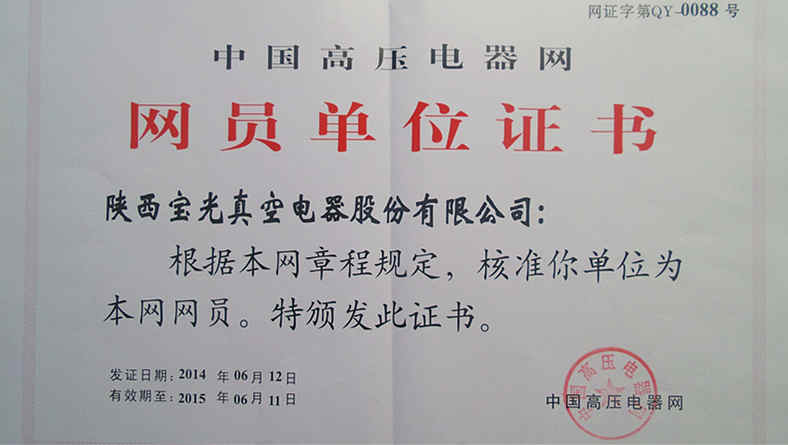 由西安高壓電器研究所主辦的中國高壓電器網(wǎng)經(jīng)過資格審查,于2014年6月份授予我公司為高壓電器會員單位。