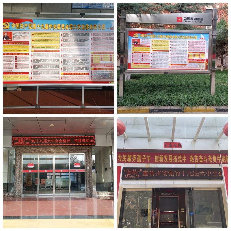 寶光股份黨委工作部門(mén)通過(guò)LED大屏、宣傳櫥窗、展板、滾動(dòng)電子屏、電視、黨建宣傳欄、主干道橫幅等宣傳平臺(tái)進(jìn)行十九屆六中全會(huì)主題外觀、宣傳口號(hào)及主題內(nèi)容宣傳,營(yíng)造濃厚的宣傳氛圍。