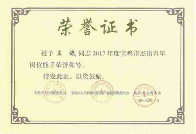 日前,零件事業(yè)部彈性元件產(chǎn)線成型組班組長王斌,喜獲寶雞市“杰出青年崗位能手”榮譽(yù)稱號。此次評選活動是由共青團(tuán)寶雞市委、市工業(yè)和信息化局、市人民政府國有資產(chǎn)監(jiān)督管理委員會聯(lián)合組織,旨在引導(dǎo)和鼓勵廣大青年不斷提高職業(yè)技能,增強(qiáng)創(chuàng)業(yè)創(chuàng)新熱情,造就一大批品德優(yōu)良,技能精湛、勇于創(chuàng)新、成績突出的優(yōu)秀青年人才。據(jù)悉,2017年寶雞市共有10人獲得“杰出青年崗位能手”榮譽(yù)稱號。