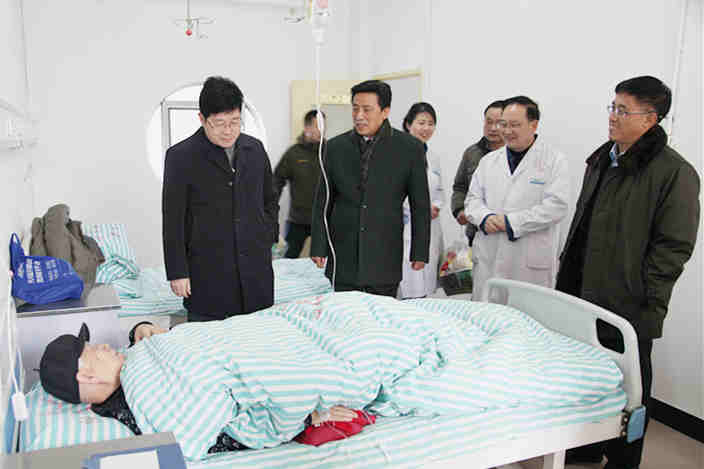 2月4日上午,集團公司董事長、黨委書記李軍望,黨委副書記、工會主席付宗喜,集團公司副總經理岳永學等領導一行,前往職工醫院看望、慰問了住院職工,為他們送上了慰問品和新春祝福,并鼓勵患病職工要以積極、樂觀向上的心態接受治療,安心養病,爭取早上康復。