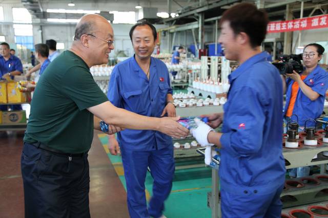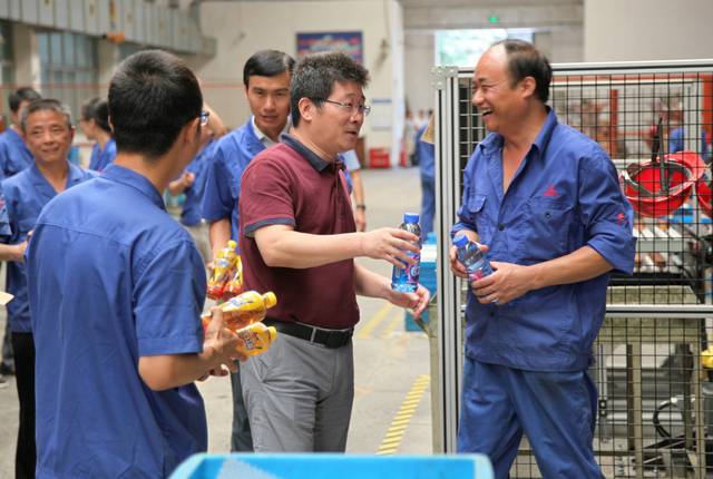 在生產一線,領導們為一線員工遞上一瓶瓶清涼飲料,并關切的說:“你們辛苦了,注意安全”。一瓶瓶飲料,一句句暖心的話,體現著公司黨政工對員工的關愛,同時也激發了員工戰高溫、促生產、保訂單信心和決心。