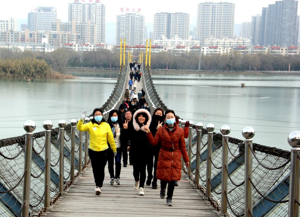 上午9:00,參加活動的職工集合在科技樓前,雖然天氣寒冷,但是職工們難掩心中的喜悅,熱情高漲。大家沿著既定線路,結(jié)伴而行,個個精神抖擻,沿著渭河岸邊的步行道闊步前行,一邊呼吸著新鮮的空氣,一邊交流著工作和生活,一路上有說有笑,不時發(fā)出開心的笑聲,感受著活動帶來的愉悅。一隊隊矯健的身影,成為冬日渭河兩岸最靚麗的風景。